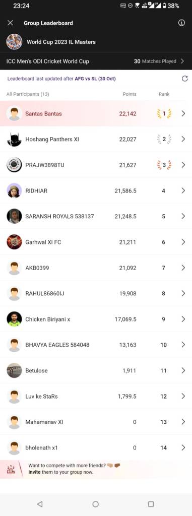 The second position went to the Chupe Rustam. Chupe Rustam is having a dream run in this tournament from the last few matches. He is defying every logic of luck and looks like he had built some AI model unknown to us all and that must be the secret of his success. It is improbable otherwise. Jokes aside, another great game Chupe Rustam and congratulations for that. I don’t think you need any more luck. In fact, I would expect you to bless us with some luck for future matches ๐.