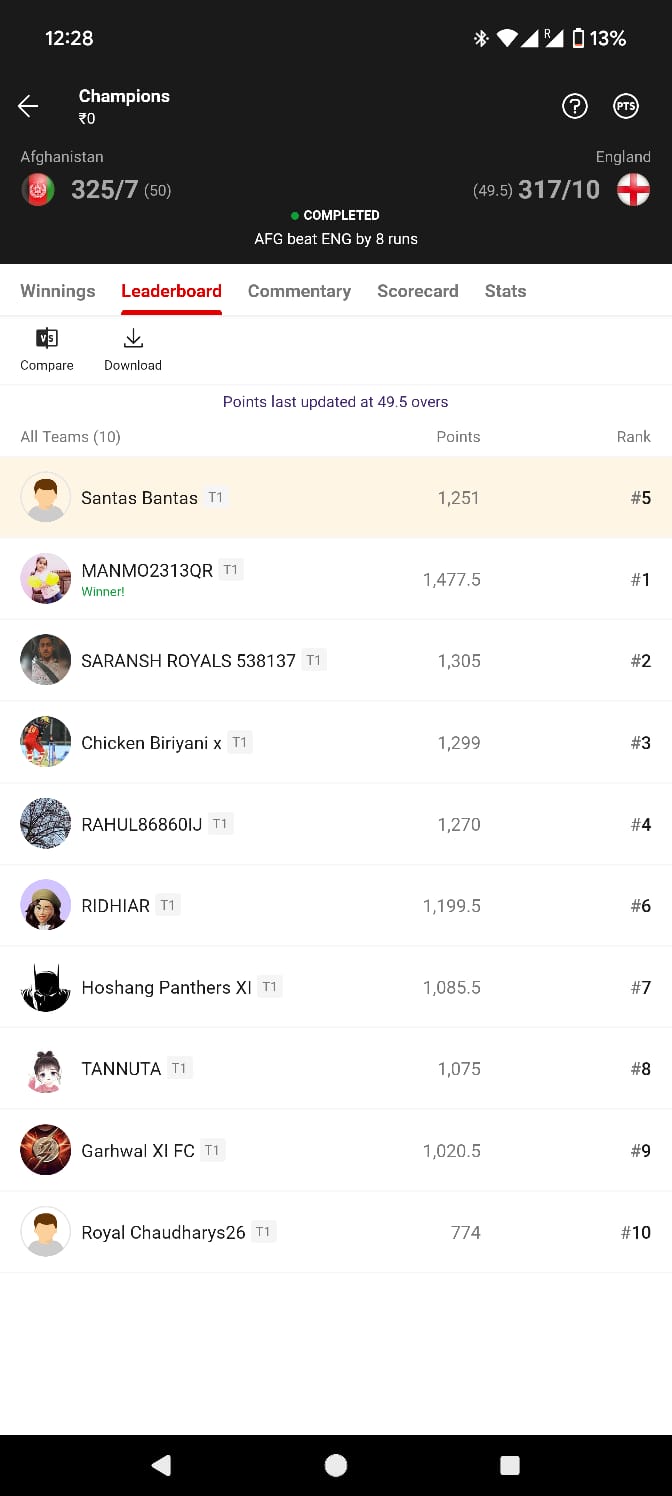 In the IL Master group, it was a run fest. All the players barring one had scored 1000+ and Mr Man came out top to get his first win. He was close to winning couple of times before as well. However, a little beat of luck was what he needed. It was not only luck though. He unlike most other masters took the risk of having 7 players out of Afghanistan. The risk paid off. Hats off to you Mr Man for thinking outside the box. Awesome game and congratulations.