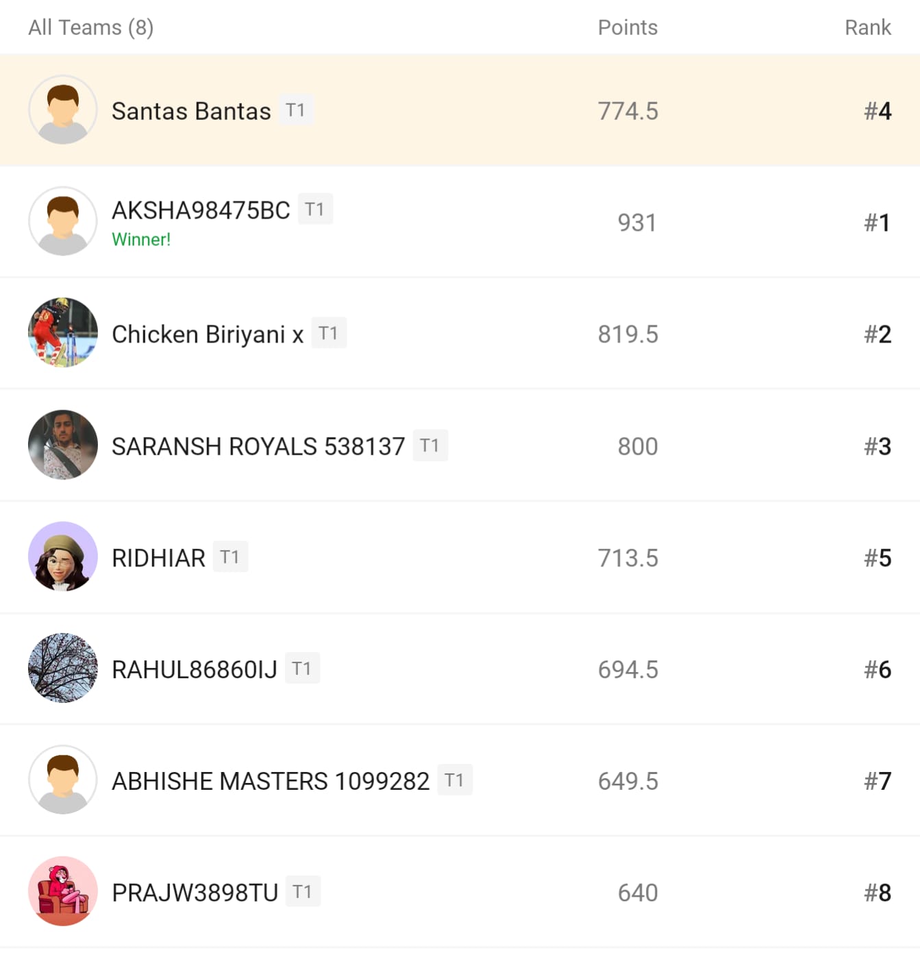 In the IL Master group, Akshu Baby won his second match of the tournament. He is now tied at top with the Dark Horse who is having a dream of a tournament. In fact, Akshu Baby now has the upper hand as he did not get any wooden spoons. Akshu Baby this is the time to go for the final blow. One more win and this will more or less be sealed. Best of luck for that and congratulations for today’s match.